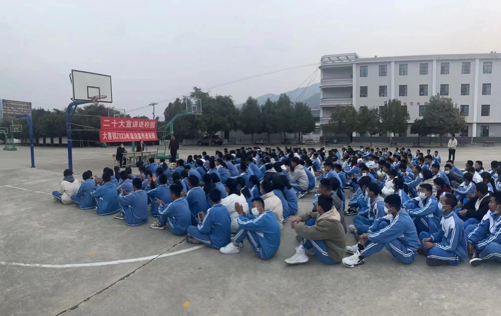 为进一步增强学生的法治观念和自我保护意识,有效预防和防止犯罪的发生,切实维护校园治安环境持续稳定。2月16日,大寨镇组织镇派出所、镇司法所和镇宣传办走进大寨中学校园,为300多名学生讲授法治课。